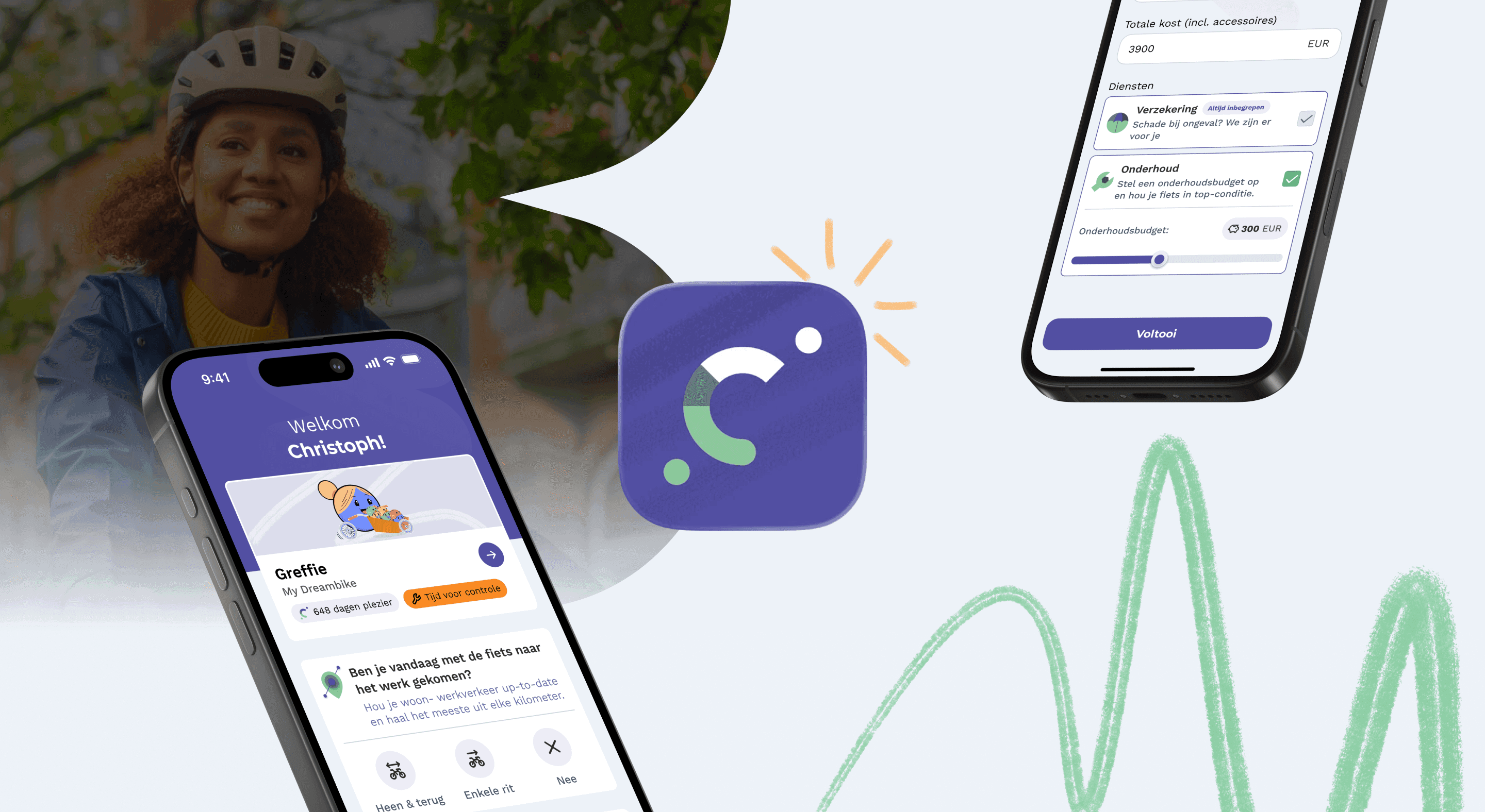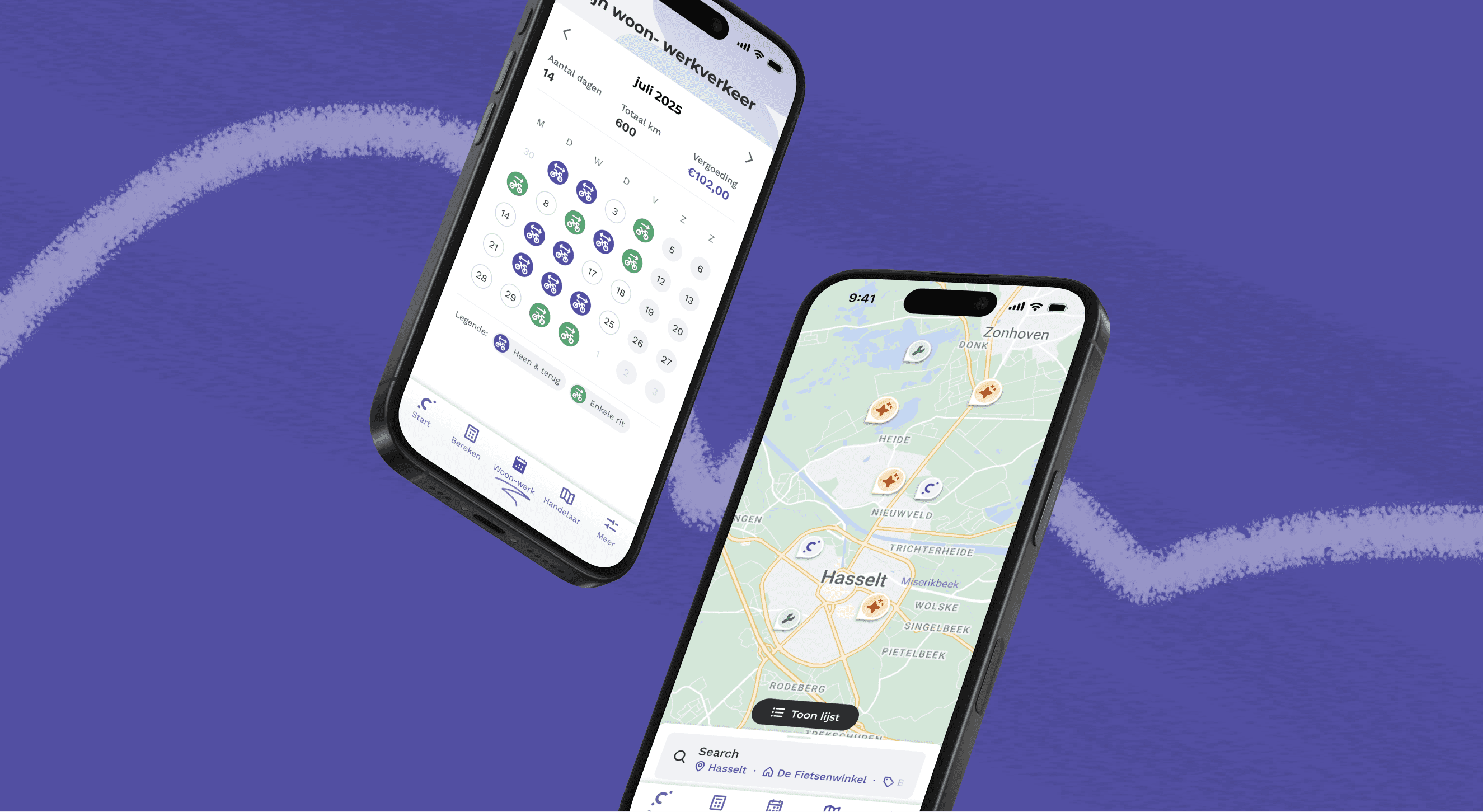 De app die we bouwden, brengt alles samen wat een fietser nodig heeft. Nieuwe fiets simuleren? Enkele tikken. Schadegeval melden? Snel en duidelijk, zonder papierwerk. Woon-werkverkeer registreren voor de fietsvergoeding? De app houdt het bij en toont hoeveel je al hebt bespaard. Push notificaties houden fietsers op de hoogte, en inloggen kan via de Single Sign-On van hun werkgever.